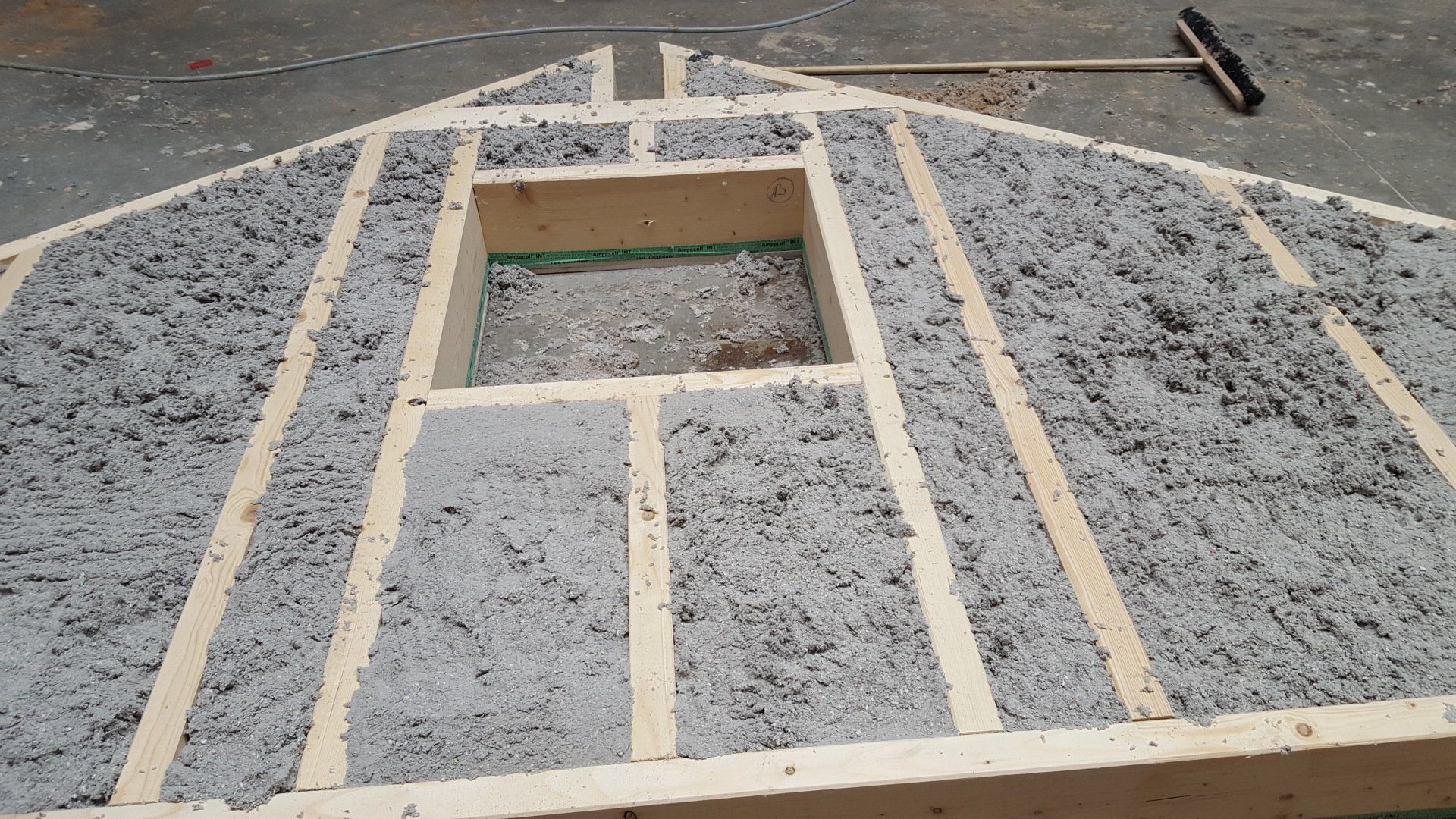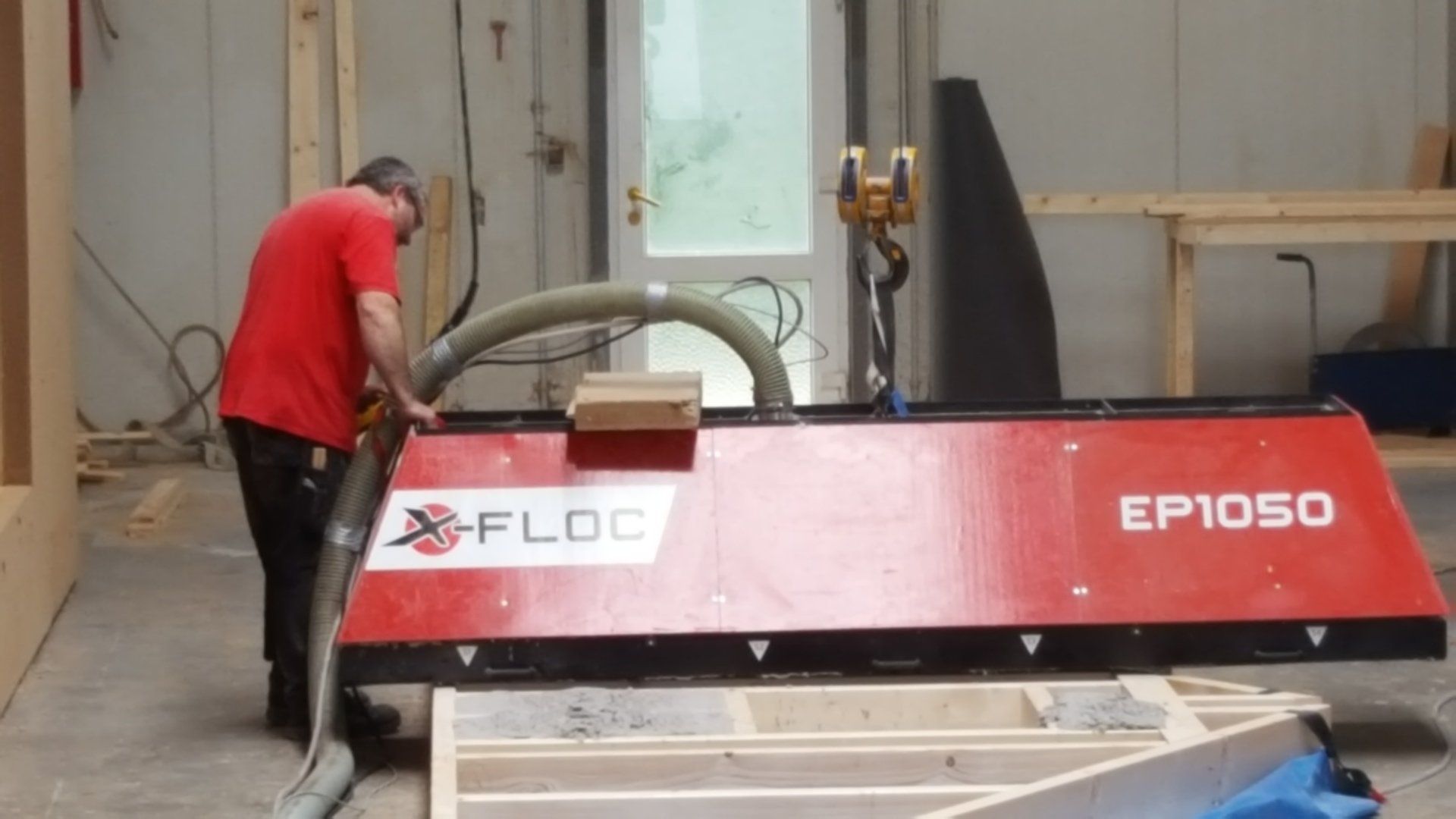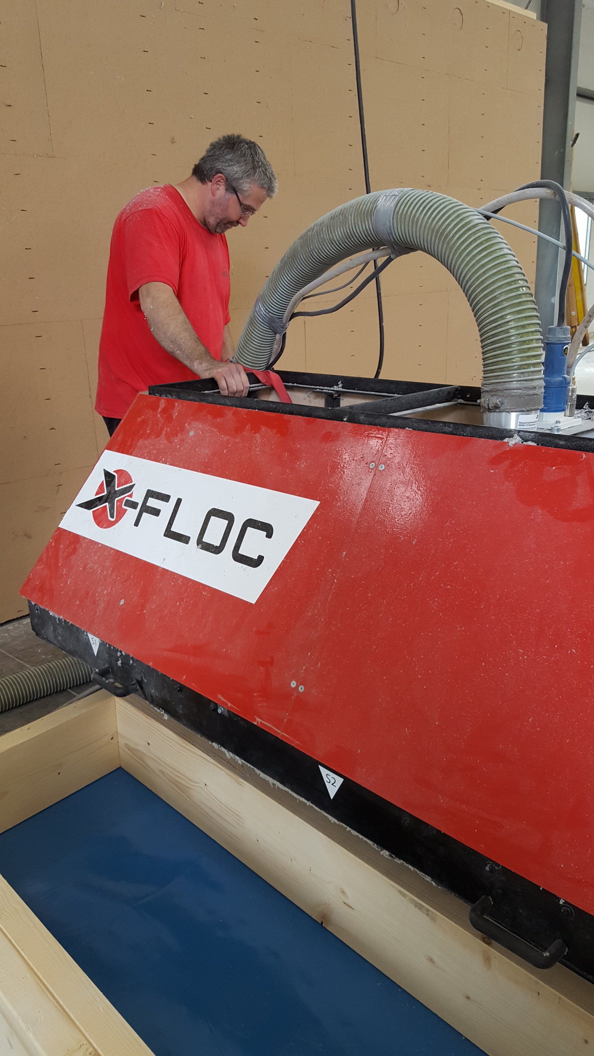 Seit einiger Zeit befindet sich auch eine moderne Einblasplatte von X-Floc in unserem Unternehmen. Mit dieser ist es möglich bereits vorgefertigte Elemente vor Ort automatisch mit losem Dämmstoff zu befüllen. Diese Einblasmethode benötigt keine Einblaslöcher, der Dämmstoff kann kontrolliert und sichtbar eingeblasen werden. Dazu benötigen wir lediglich einen vorhandenen Kran und können die Arbeiten auch nachts ausführen, wenn die Betriebshalle ihrer Zimmerei nicht genutzt wird.